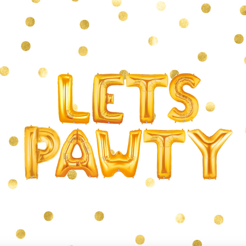 You'll receive 1 set of Balloons that spell Lets Pawty